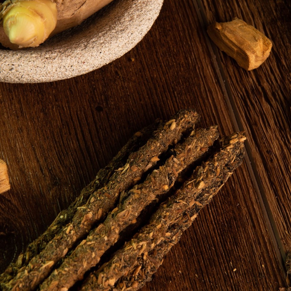 Een levendige geur van gember, die sterk in de aarde geworteld is, in combinatie met de zuiverende werking van de geur van Palo Santo. Deze wierook zorgt voor stabilisatie en vertrouwen en een betere verbinding met Moeder Aarde.