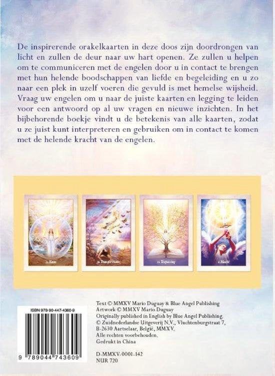 Vraag uw engelen om u naar de juiste kaarten en legging te leiden voor een antwoord op al uw vragen en nieuwe inzichten. In het bijbehorende boekje vindt u de betekenis van alle kaarten, zodat u ze juist kunt interpreteren en gebruiken om in contact te komen met de helende kracht van de engelen.