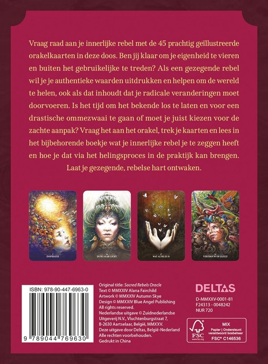 Ontdek de kracht van je innerlijke rebel met de De Wijsheid van je Innerlijke Rebel orakelset. Deze set bevat 45 prachtig geïllustreerde kaarten die je helpen je eigenheid te vieren en buiten het gebruikelijke te treden. Laat je gezegende rebel je leiden bij het uitdrukken van je authentieke waarden en het maken van keuzes die de wereld kunnen helen, zelfs als dit radicale veranderingen vereist.