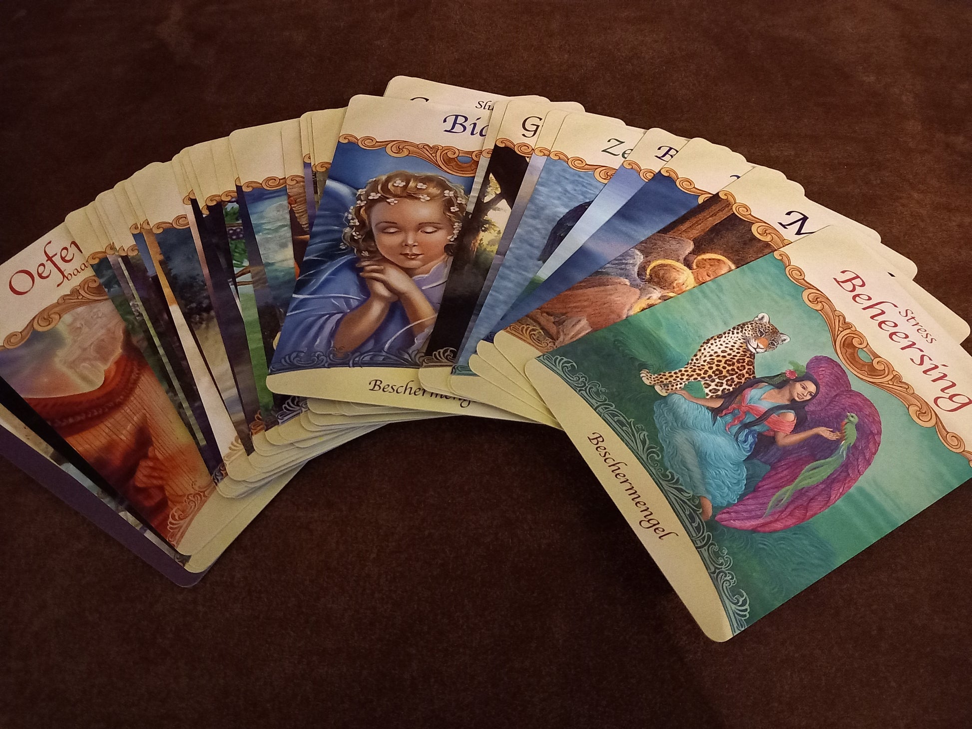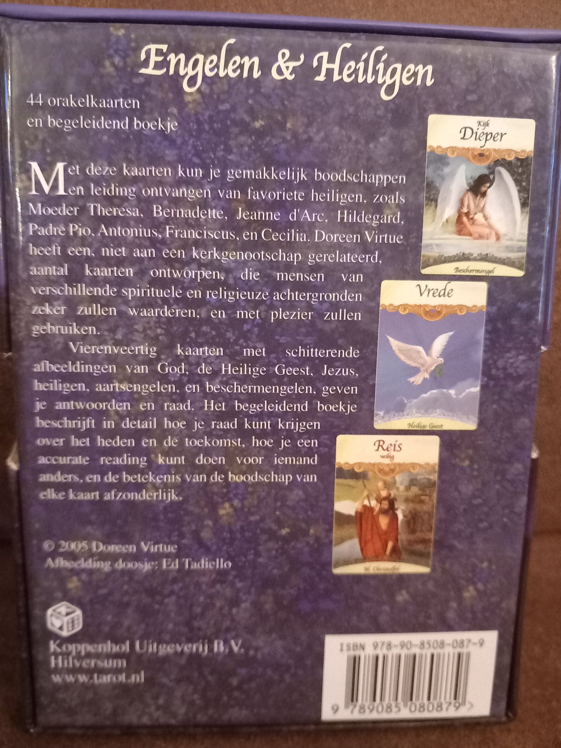 Met deze kaarten kun je gemakkelijk boodschappen en leiding ontvangen van favoriete heiligen, zoals Moeder Theresa. Bernadette, Jeanne d'Arc. Hildegard, Padre Pio, Antonius, Franciscus, en Cecilia, Doreen Virtue heeft een, niet aan een kerkgenootschap gerelateerd, aantal kaarten ontworpen. die mensen van verschillende spirituele en religieuze achtergronden zeker zullen waarderen, en met plezier zullen gebruiken.