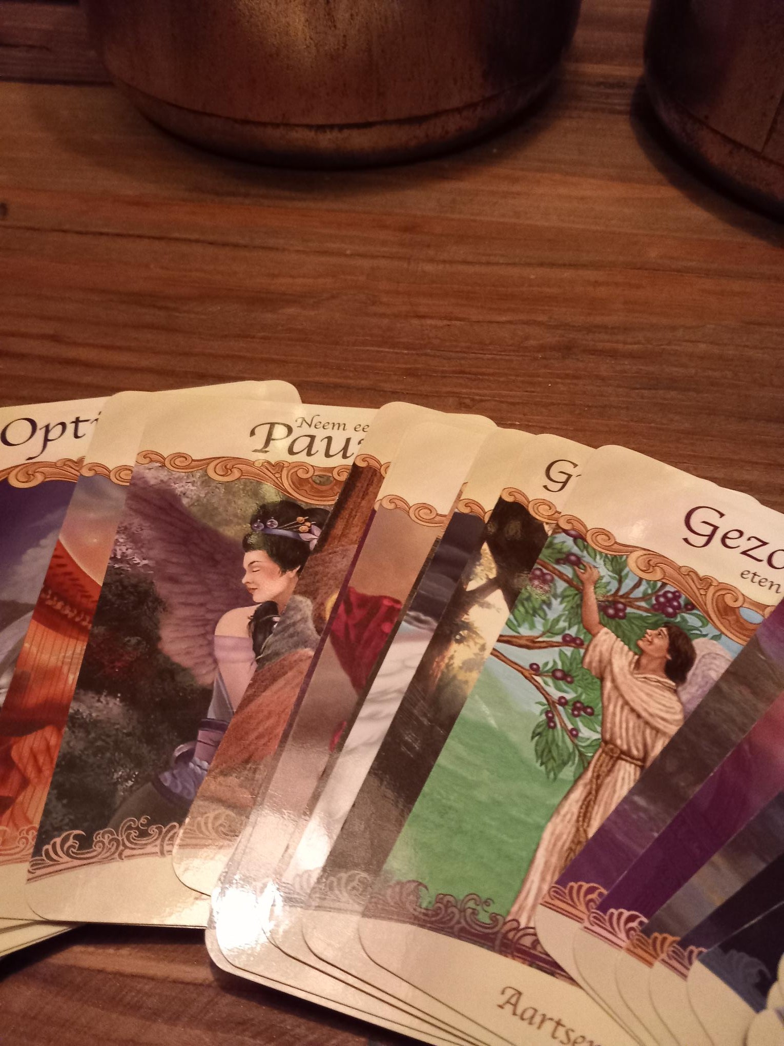 Met deze kaarten kun je gemakkelijk boodschappen en leiding ontvangen van favoriete heiligen, zoals Moeder Theresa. Bernadette, Jeanne d'Arc. Hildegard, Padre Pio, Antonius, Franciscus, en Cecilia, Doreen Virtue heeft een, niet aan een kerkgenootschap gerelateerd, aantal kaarten ontworpen. die mensen van verschillende spirituele en religieuze achtergronden zeker zullen waarderen, en met plezier zullen gebruiken.